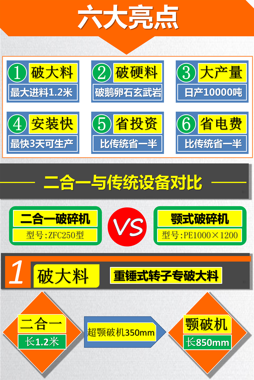 新型高效節(jié)能型二合一破碎機(jī)的八大優(yōu)勢(shì)特點(diǎn):