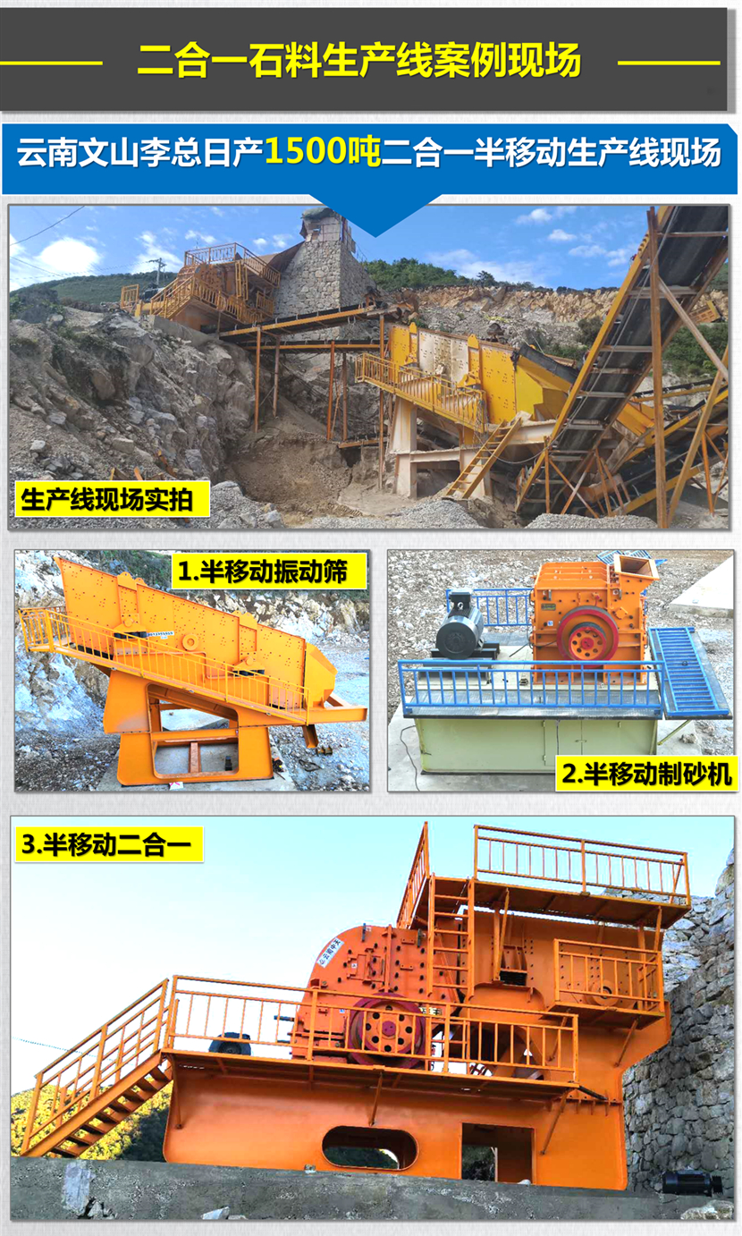 普通石料除錘頭和反擊襯板外,整個(gè)使用過程基本不用更換配件(沒有比二合一更省配件的破碎設(shè)備)。
