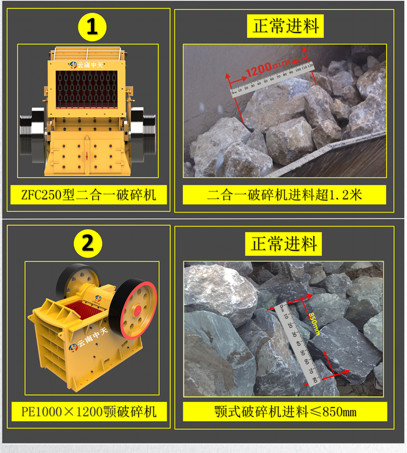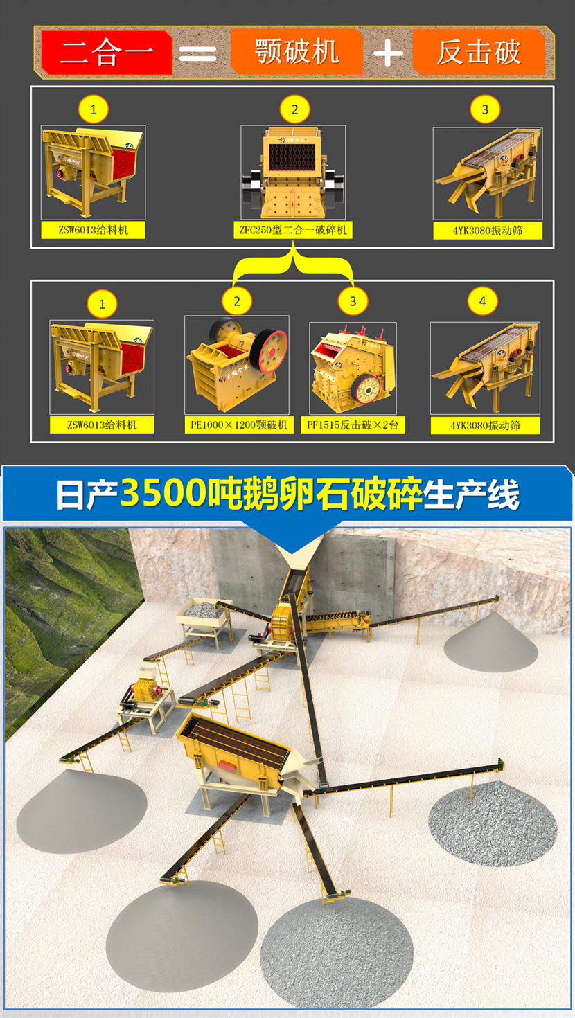 2、可作二破用,大型顎破選配小型二合一破碎機(jī),作新型反擊破用。